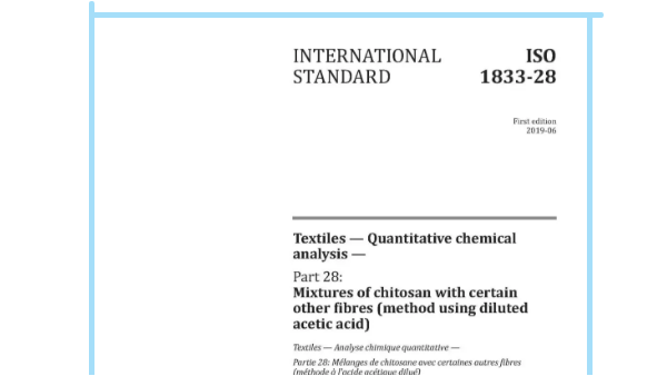 由中國通用技術(shù)集團中紡院中紡標(biāo)檢驗認證股份有限公司(簡稱:中紡標(biāo))牽頭制定的國際標(biāo)準(zhǔn)ISO1833-28:2019《紡織品定量化學(xué)分析第28部分:殼聚糖纖維與某些其他纖維混合物(稀乙酸法)》正式發(fā)布